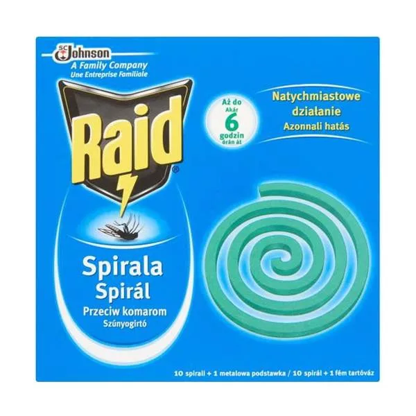 U ljetnim mjesecima, neizostavan dodatak prijateljskim razgovorima koji traju do kasno u noć je spirala protiv komaraca. Komarci, ti pohlepni mali krvopije, mogu pokvariti ugodno započeto večernje druženje jer, kako bi utažili glad, ciljaju sve ljude i životinje. Učinite svoju okolinu zonom bez komaraca uz pomoć spirale protiv komaraca, koja svojim patentiranim sastojcima gotovo poput zaštitne barijere drži komarce podalje. Upotreba spirale protiv komaraca je jednostavna: stavite spiralu u držač, a zatim zapalite njezin kraj. Važno je da se Raid spirala protiv komaraca koristi samo na otvorenom! Pakiranje Raid spirale protiv komaraca sadrži 10 spirala i 1 držač.