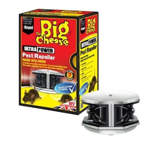 Uređaj protiv glodavaca na ultrazvuku The Big Cheese Ultra Power. Uređaj može emitirati ultrazvuk visoke snage.