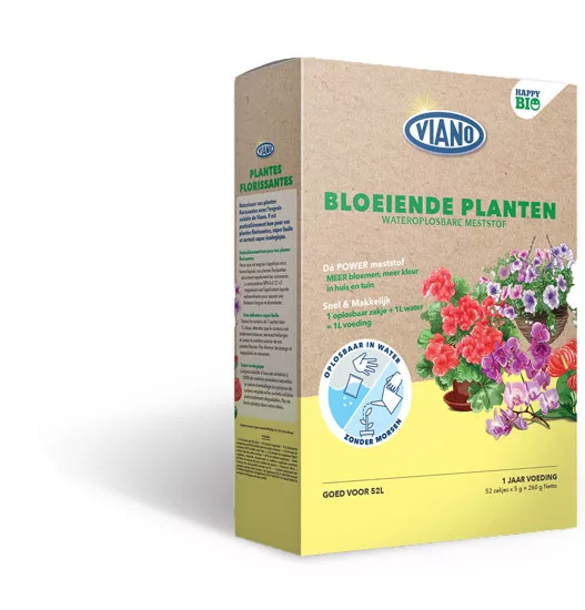 kompleksno organsko gnojivo za biljke, za unutarnje i vanjske cvjetajuće ukrasne biljke (uključujući orhideje) za nadopunu hranjivih tvari. Visok sadržaj kalija i magnezija osigurava obilno cvjetanje biljaka. Kartonska kutija sadrži 52 kom 5 g kapsula koje se u potpunosti otapaju u vodi. Za otapanje upotrijebite vodu temperature 20–25°C. Nakon miješanja, zalijte tlo biljaka s 1 litrom pripremljene otopine organskog gnojiva. U kartonskoj kutiji nalazi se 52 kapsule potrebne za tjednu (jednogodišnju) nadopunu hranjivih tvari. Za biljke u posudama promjera 15–30 cm upotrijebite 0,3 litre otopine po primjeni. PROIZVOD POSJEDUJE TÜV NORD BIO CERTIFIKAT.
