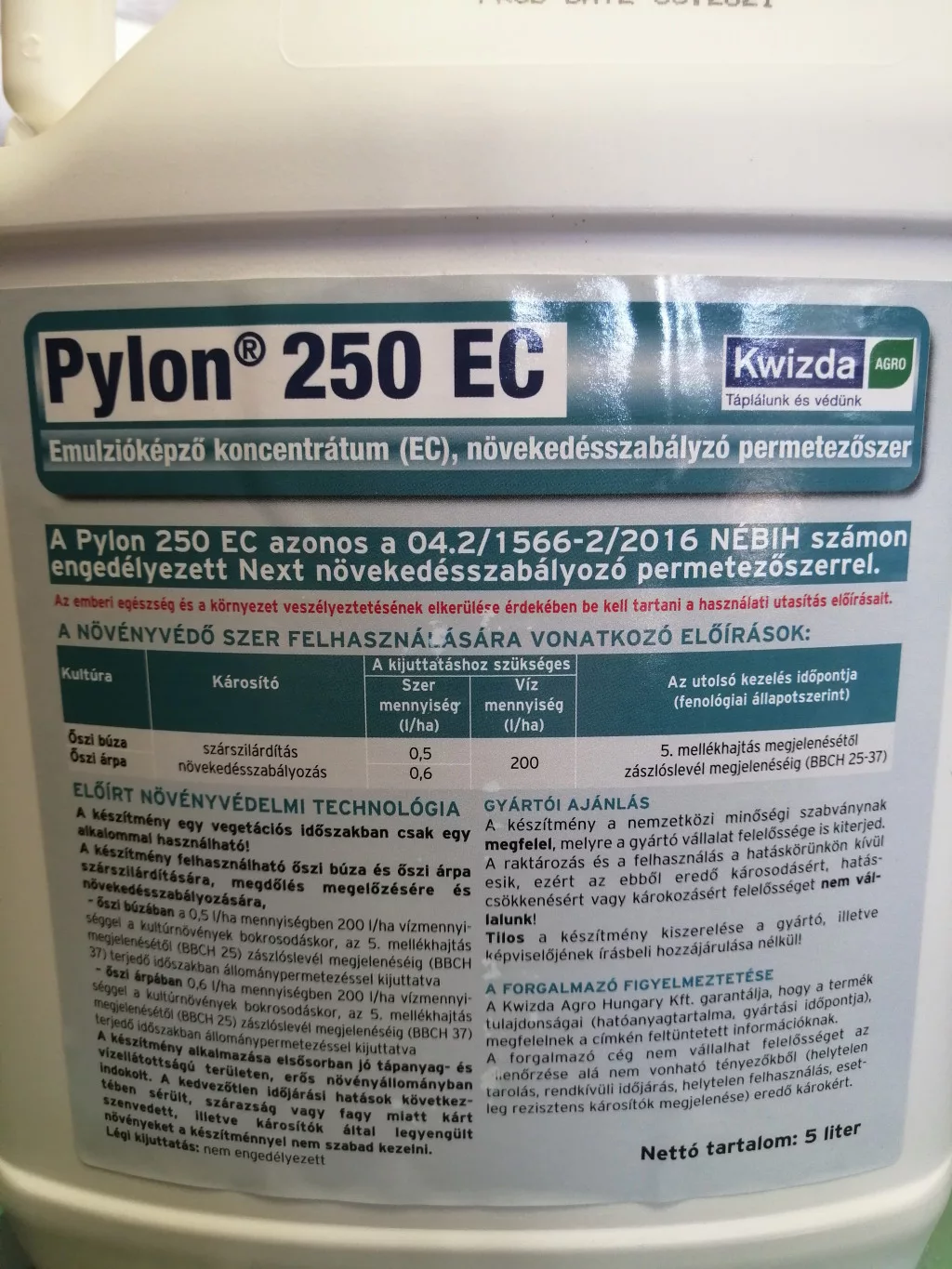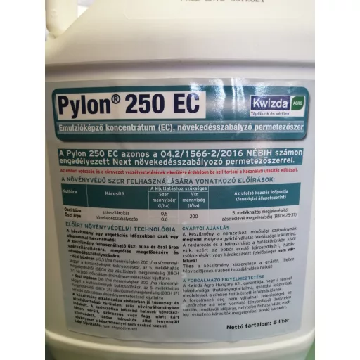Zadebljava stijenku stabljike, čime smanjuje vjerojatnost polijeganja, čini biljke otpornijima na bolesti i povećava otpornost na sušu. Pylon 250 EC identičan je sredstvu za regulaciju rasta Next, odobrenom pod brojem NÉBIH 04.2/1566-2/2016.