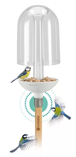 GARDENA ClickUp! hranilica za ptice je moderna hranilica posebno dizajnirana za naše pernate prijatelje kao mali vrtni restoran. Hranilica izgleda izvanredno u vrtu. Osim privlačnog i elegantnog dizajna, posebno lijep prizor su ptići-gosti koji dolaze. Poklopljena hranilica potpuno je prozirna i izrađena od akrilnog stakla (PMMA), tako da možeš vidjeti kako mali gosti uživaju u hrani. Robusna plastika bez problema podnosi vremenske nepogode. Ima zaštitu od UV zraka, topline i smrzavanja, pa ptice mogu cjevrcati u tvom vrtu tijekom cijele godine. Zahvaljujući brzo-učnom mehanizmu, hranilicu je jednostavno pričvrstiti i ukloniti s drške od crvenog bora. Brzo-učni spoj je izuzetno stabilan i bez klimanja, kako ptice ne bi bile uplašene ili ozlijeđene nekim neočekivanim pokretom i kako hranilica ne bi pala. Praktičan dio za hranjenje može se napuniti običnom ptičjom hranom, na primjer suncokretovim sjemenkama; samo povuci dno i naspi hranu. Po potrebi se hranilica može u potpunosti rastaviti i prati u perilici posuđa. Prozirna i higijenska hranilica izrađena je od visokokvalitetnog materijala, redovito se može čistiti i štiti hranu od vlage. Zbog uskog ruba ptice ne mogu zaprljati sjemenke, što bi moglo biti izvor infekcije i zagađivati hranu. GARDENA daje petogodišnje jamstvo na ovaj kvalitetan proizvod. Stilski dodaci za svaku sezonu – da u tvom vrtu zvuči ugodan šušt ptica.
