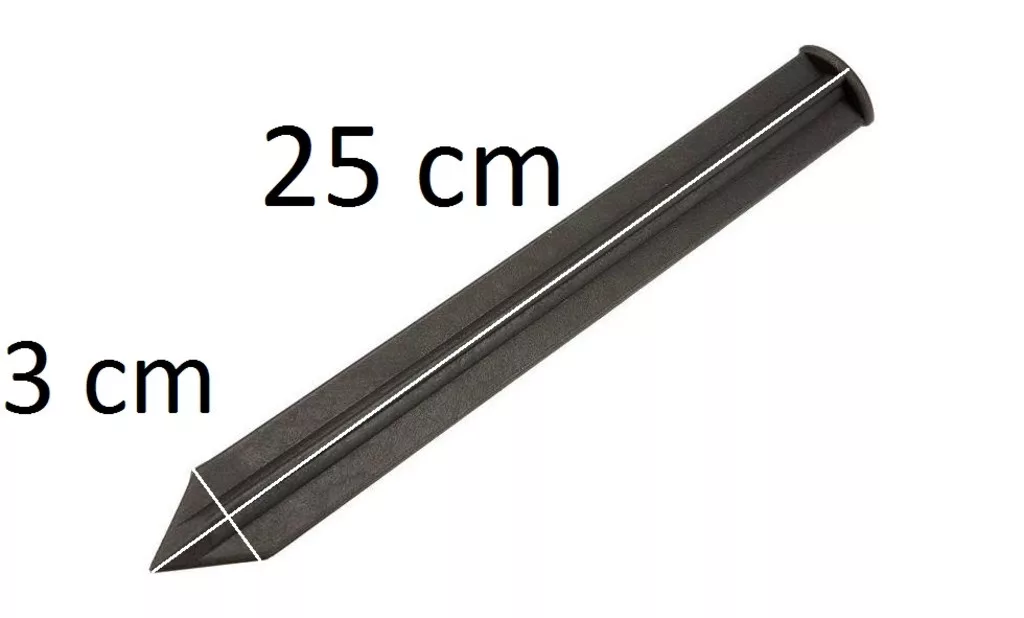 - Učvršćivač se može zabiti u zemlju s nekoliko laganih udaraca čekićem i time je postavljanje gotovo.