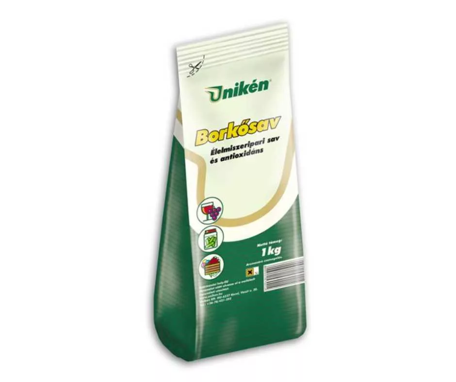 Kemijski dvofazna oksokiselina. Bijele boje, kristalna tvar. Prirodnog podrijetla. Dobro se otapa u vodi i vinu.