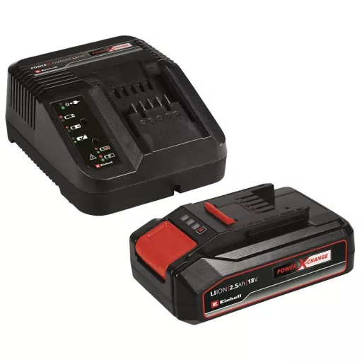 Planirate li kupiti svoj prvi Power X-Change uređaj? Možda želite proširiti postojeći park alata? Bez obzira u kojoj ste fazi, Einhell 18 V 2,5Ah PXC početni paket savršen je izbor za oba slučaja! Početni paket koji sadrži 18 V 2,5 Ah Power X-Change bateriju i brzi punjač multifunkcionalni je član obitelji Power X-Change. S univerzalnim Power X-Change baterijama možete napajati sve uređaje iz serije, pa slobodno koristite istu bateriju za vrtne poslove ili za napajanje strojeva. Sa serijom punjača možete napuniti sve PXC baterije. Zašto biste ga isprobali? Budući da će vam trebati samo jedna baterija i jedan punjač za rad različitih alata i strojeva, ne samo da štedite novac, već i štitite okoliš koristeći baterijske Power X-Change proizvode koji pružaju maksimalnu fleksibilnost! Štoviše, zahvaljujući univerzalnom rješenju izbjegavate kaos koji nastaje korištenjem i skladištenjem različitih tipova punjača i baterija. Budući da nema memorijskog efekta niti dubokog pražnjenja, visokokvalitetne baterije isporučuju ujednačenu i veliku snagu. 18 V 2,5 Ah Multi-Ah Power X-Change PLUS vrhunska je baterija obitelji Power X-Change, koju zahvaljujući TWIN-PACK tehnologiji (u kombinaciji s drugom 18 V PXC baterijom) možete upotrebljavati i za radove koji zahtijevaju 36 V. Zahvaljujući ugrađenom mikrprocesoru, aktivni sustav nadzora baterije (ABS) kontinuirano prati i kontrolira sve parametre baterije, osiguravajući maksimalnu sigurnost, optimalne performanse, maksimalno trajanje rada i vijek baterije. Trenutnu razinu napunjenosti možete očitati na LED zaslonu s 3 razine. Baterija je izrađena otporna na prašinu, koroziju i fizička oštećenja. Uz pomoć udubljenih rukohvata bateriju je jednostavno izvaditi iz uređaja. Radi uštede prostora, kompaktni punjač opremljen je ugrađenim zidnim kukama za vješanje. Tehnologija brzog punjenja omogućuje kratko vrijeme punjenja, a inteligentni sustav nadzora baterije osigurava trajno optimiziran proces punjenja i maksimalnu sigurnost. Funkcija osvježavanja (Refresh) omogućuje ponovno stavljanje u pogon i duboko ispražnjenih baterija. Trenutnu razinu napunjenosti uvijek možete provjeriti na LED zaslonu s 6 razina.