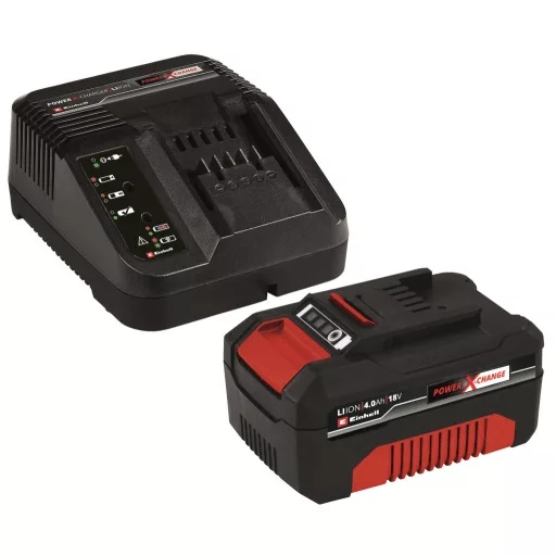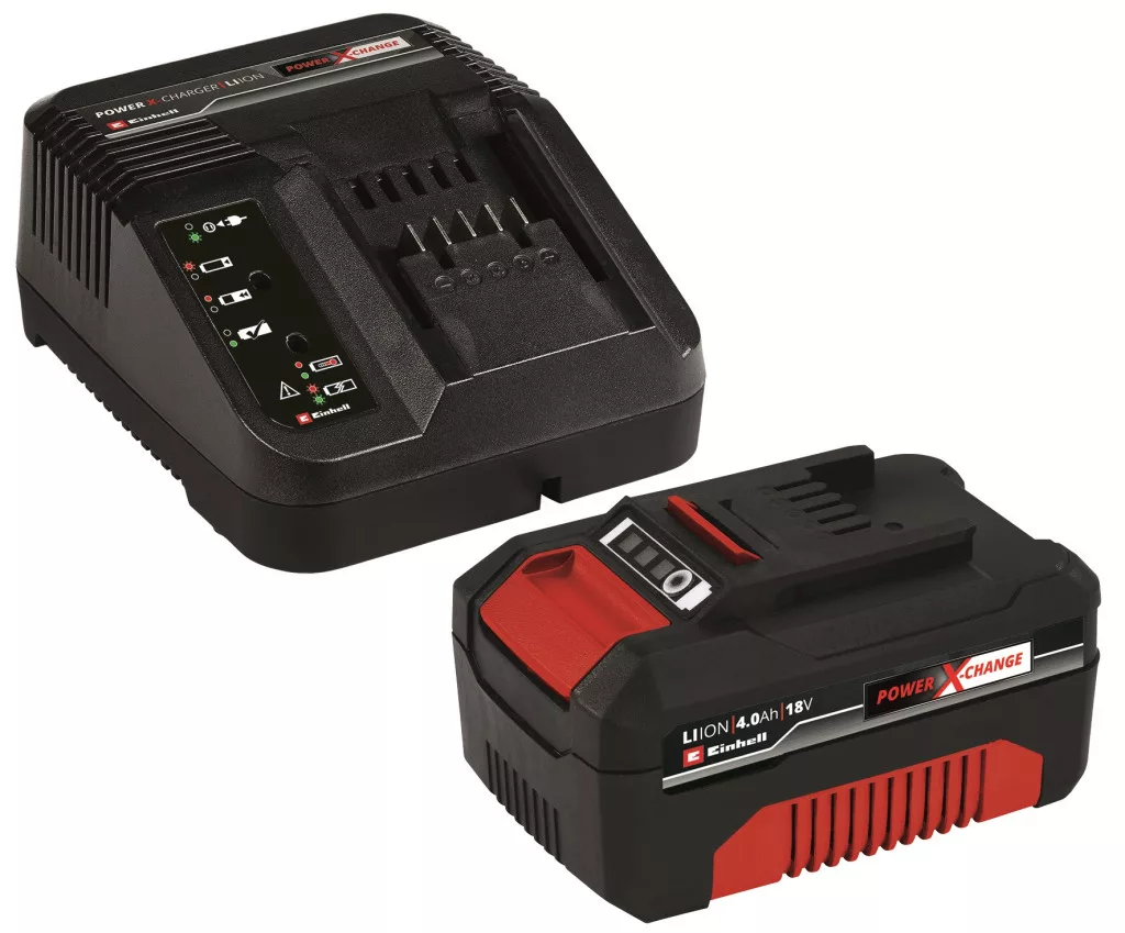 Einhell 18 V 4,0 Ah PXC Starter Kit najmoćniji je start paket inovativne litij-ionske serije. Bilo da se tek upoznajete s PXC tehnologijom ili tražite dodatak za već postojeće alate, start paket sa snažnom 4,0 Ah PXC baterijom i punjačem bit će vam izuzetno koristan pomagač. Power X-Change sustav baterija je multifunkcionalan i baterije se mogu međusobno kombinirati te koristiti za sve vrtne uređaje i električne alate iz asortimana. Zašto ga isprobati? Ako koristite jednu jedinstvenu bateriju i punjač za sve uređaje, ne samo da možete znatno smanjiti troškove, već i izbjeći kaos koji nastaje korištenjem i skladištenjem različitih tipova punjača i baterija. Baterije možete koristiti za sve uređaje iz Power X-Change obitelji proizvoda. Proaktivni sustav upravljanja baterijom i inteligentno upravljanje punjenjem jamče maksimalnu sigurnost i dug vijek trajanja. Glavne parametre kontinuirano provjeravaju komponente proizvedene s najmodernijom tehnologijom. Punjač kontinuirano nadzire ciklus punjenja, osiguravajući uvijek najoptimalnije punjenje. Zahvaljujući prilagodljivom punjenju, vijek trajanja baterije se značajno produljuje. Nema dubokog pražnjenja, pa možete napuniti bateriju sastavljenu od visokokvalitetnih litij-ionskih ćelija u bilo kojem trenutku bez oštećenja – bez obzira na razinu napunjenosti. Razinu napunjenosti baterije možete očitati na trostupanjskom LED pokazivaču stanja napunjenosti. Šestostupanjski punjač prikazuje stvarnu razinu napunjenosti u stvarnom vremenu tijekom punjenja. Visoka otpornost na udarce i sigurno držanje zahvaljujući gumiranom kućištu. Bateriju možete jednostavno i brzo skinuti s uređaja držeći ulegnuto rukohvat na bateriji. Punjač možete, zahvaljujući ugrađenom zakačkom, i objesiti na zid.