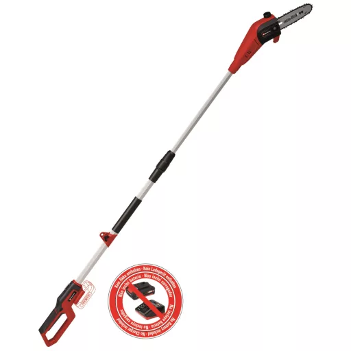 Pila za obrezivanje grana na visini Einhell GC-LC 18/20 Li T-Solo na akumulator neizostavan je pomagač za redovitu njegu stabala i viših grmova. Štihalj spada u Power X-Change obitelj. Uređaj se isporučuje bez akumulatora i punjača. One možete kupiti zasebno – na primjer u praktičnim početnim paketima s različitim kapacitetima. Duljina vodilice 200 mm (vrhunska OREGON pila i lanac) i brzina rezanja 5,5 m/s jamče da ćete grane moći odrezati bez problema, brzo i učinkovito. Glava motora naginje se za 30°. Korištenjem produžene drške možete lako odsjeći i više smještene grane. Za udoban rad i čvrst hvat brinu gumirane površine. Uređaj dolazi i s tvornički priloženim remenom. Metalni prijenos jamči dug radni vijek. Kljunasti udarač je izrađen od metala, a maksimalnu sigurnost osigurava čep za učvršćivanje lanca. Pila kontinuirano podmazuje lanac tijekom rada.