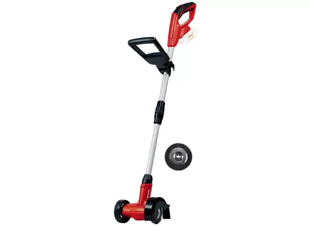 S praktičnim akumulatorskim čistačem fuge GE-CC 18 Li Solo možete za tren pretvoriti staze u vrtu u ljepše i produžiti vijek trajanja pločnika. S akumulatorskim čistačem fuge radite lako i učinkovito. Četke su zamjenjive: u tvorničkom pakiranju nalaze se jedna najlonska i jedna četka od nehrđajućeg čelika. Podesivim izvlačnim upravljačkim držalom bez stupnjevanja uvijek možete postaviti visinu prema načinu rada; time štitite leđa i koljena. Rad s uređajem izuzetno je jednostavan zahvaljujući pomoćnoj ručki podesivoj bez stupnjevanja i kotačićima. Uređaj s površinom Softgrip čini rad ugodnim — čak i kod dužih poslova čišćenja. Akumulatorski čistač fuge član je obitelji Power X-Change tvrtke Einhell koja se temelji na novoj litij-ionskoj tehnologiji. Proizvodi iz serije Power X-Change mogu koristiti sve sustavne akumulatore za ovaj akumulatorski čistač fuge. Uređaj se isporučuje bez akumulatora i punjača.
