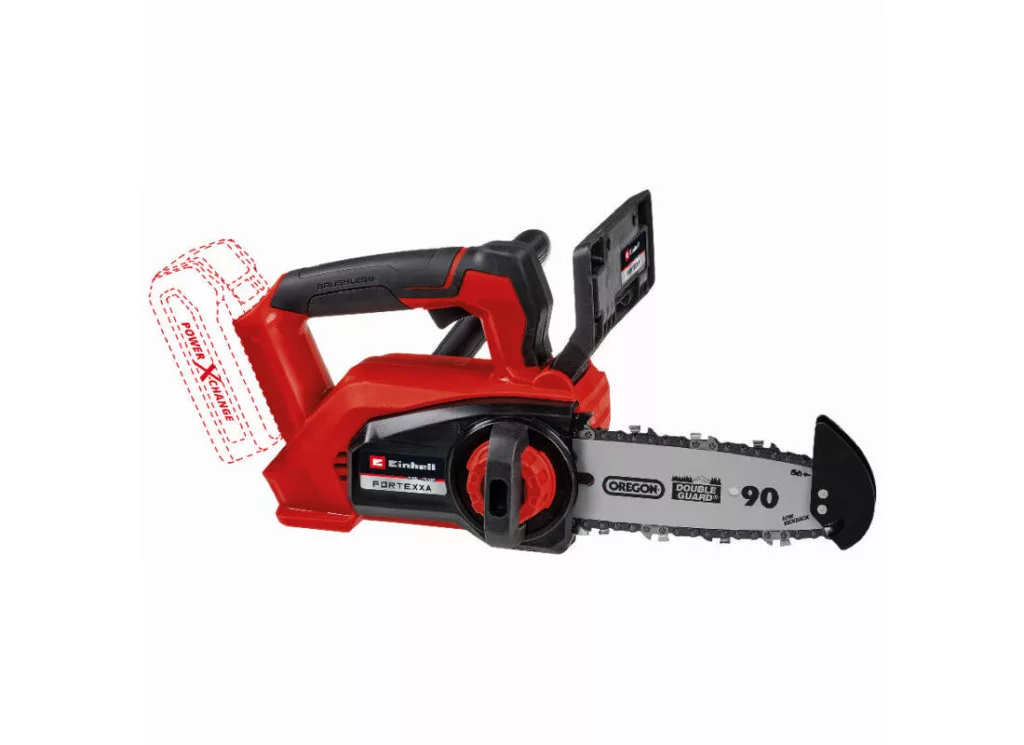 Einhell FORTEXXA 18/20 TH jednoručna akumulatorska lančana pila član je visokoučinkovitih uređaja iz sustava Power X-Change. Dizajnirana za orezivanje i rezanje grana, praktična je, lagana i ergonomična, a opremljena je Einhell motorom bez četkica. Ovaj tip električnog motora znatno je izdržljiviji i snažniji od tradicionalnih motora s četkicama. Uz visokokvalitetnu OREGON vodilicu lako ćete rezati i deblje grane. Korisnika štiti više sigurnosnih uređaja: radi smanjenja rizika od povratnog udara uređaj je opremljen zaštitom vrha vodilice, zaštitom od povratnog udara, lančanom kočnicom i sigurnosnim klinovima za zaustavljanje lanca. Za podešavanje zatezanja lanca nisu potrebni alati; to omogućuje jednostavnu zamjenu lanca i lakše rukovanje. Neprekidnu i jednostavnu njegu lanca osigurava automatsko podmazivanje lanca. Ulje se jednostavno dopunjava kroz veliki otvor za ulje. Čvrsti metalni odbojnik s kukama, a drška koja osigurava ergonomičan i siguran hvat prekrivena je Softgrip površinom. Pila radi s jednom 18 V Power X-Change baterijom. Za optimalne rezultate preporučujemo korištenje baterije kapaciteta 2,5 Ah ili većeg. Inovativna i snažna PXC serija pruža maksimalnu fleksibilnost: litij-ionske baterije mogu se koristiti u svim drugim uređajima iz iste linije proizvoda. Power X-Change uređaje možete napajati bilo kojom baterijom iz sustava. Uređaj se isporučuje bez baterije i punjača; iste možete kupiti zasebno — primjerice u obliku praktičnih Power X-Change starter paketa različitih kapaciteta. PAŽNJA! Pilu smiju koristiti isključivo obučeni vrtlari i stručnjaci za njegu drveća! Nepoštivanje sigurnosnih uputa i uputa za uporabu može prouzročiti teške (pa čak i smrtne) ozljede.