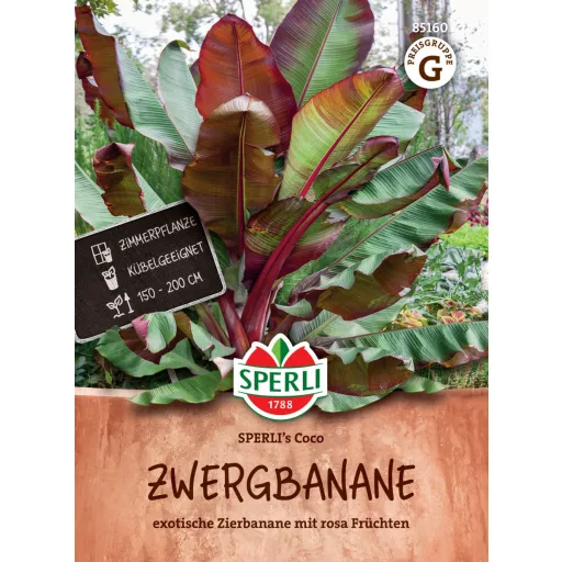 Egzotična, dekorativna banana s ružičastim plodovima koja u nekoliko mjeseci naraste vrlo velika u svijetloj sobi, zimskoj vrtu ili stakleniku. Treba joj toplo, zaštićeno mjesto (npr. ljeti sunčana terasa), hranjivo, ilovasto-humozno tlo i veliki lonac. Nakon cvatnje biljka se povlači.