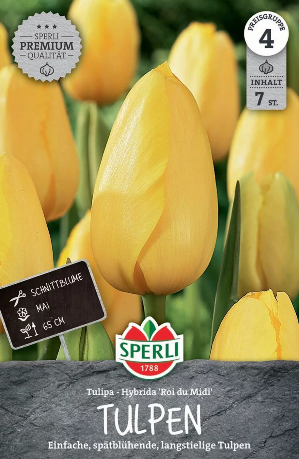 Karakteristike tulipana Roi du Midi: Najkasnija sorta tulipana koja dugo cvjeta, sunčano žute boje. U cvjetnim gredicama ima veliku ukrasnu vrijednost, ali može se koristiti i kao rezano cvijeće. Najljepše izgleda posađena u skupinama. Visina: 65 cm. Cvjetanje: Otvara se u svibnju...