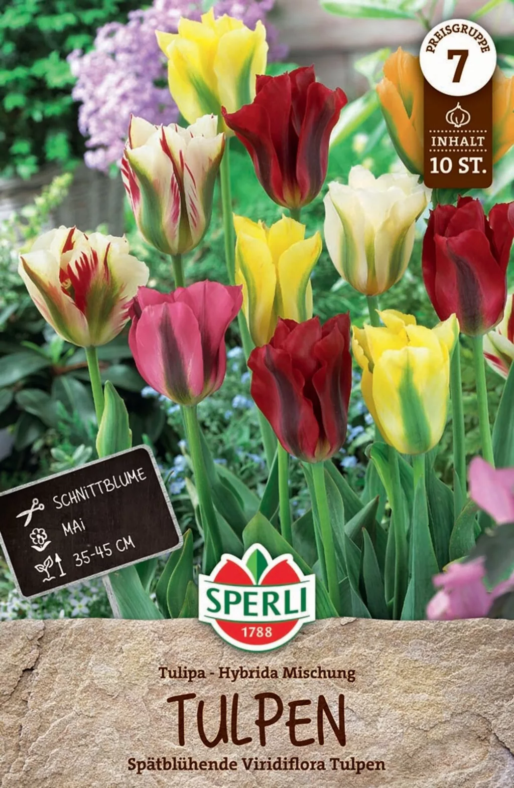 Karakteristike tulipana Viridiflora mješavine boja: Kasno cvjetajući, biljka s vrlo postojanim cvjetovima. Na sredini latica svakog cvijeta mješavine boja nalazi se snažna zelena pruga, koja na tamnijim laticama daje crno-ljubičasti izgled. Saditi u skupinama u gredicama ili za rez...