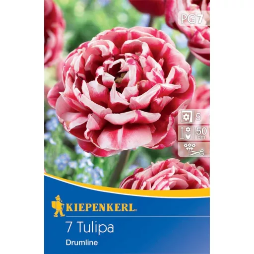 Značajke tulipana Drumline: punocvjetni tulipan, crvene latice s bijelim sjenčanjem na vrhovima latica. Saditi na sunčano mjesto, nakon sadnje zahtijeva temeljito zalijevanje. Može se koristiti i kao rezani cvijet. Visina: 50 cm. Cvjetanje: cvjeta u svibnju. ...