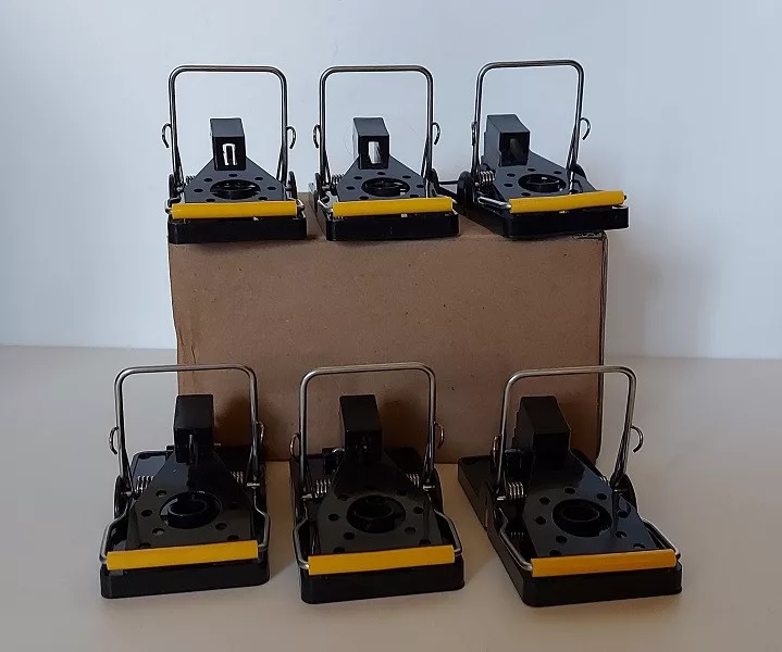 Tradicionalno djelujuća klopka za miševe sa spuštajućim mehanizmom i snažnom oprugom.