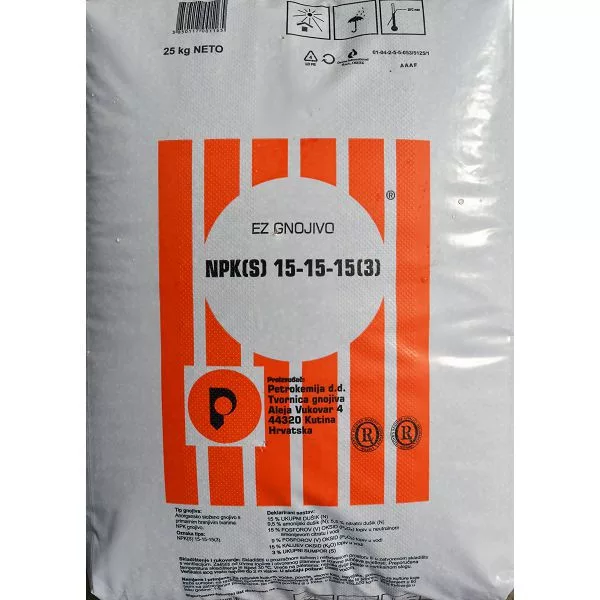 NPK 15-15-15 je kompleksno gnojivo koje se može primjenjivati u svim poljoprivrednim i vrtlarskim kulturama, kao osnovno i prihranjivanje. Pravom dozom možemo osigurati optimalnu razinu hranjivih tvari u tlu, što je neophodno za uzgoj svih vrtnih biljaka.