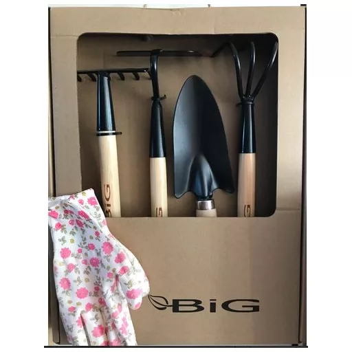 Zbog idealne veličine i drške s kukom, četverodijelni osnovni vrtni set lako se pohranjuje. Uz set alata dolazi poklon rukavica s cvjetnim uzorkom, za sigurnije i elegantnije vrtlarenje. S pomoću sadržaja paketa možemo njegovati i kultivirati naše cvjetne i kamenite vrtove te biljke na balkonu. Brušena borova drška čini rad ugodnijim, a izdržljive metalne glave čine pripremu tla preciznijom.