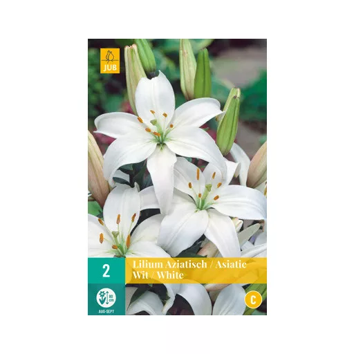 Lukovica ljiljana (Asiatic) White 2 kom JUB je elegantan azijski ljiljan sniježno bijelih cvjetova koji sa svojim profinjenim izgledom uljepšava svaki vrt ili prednji vrt. Pakiranje sadrži 2 pažljivo odabrane lukovice koje će pri pravilnom sadnji i njezi izrasti u snažne stabljike i obilno cvjetanje.