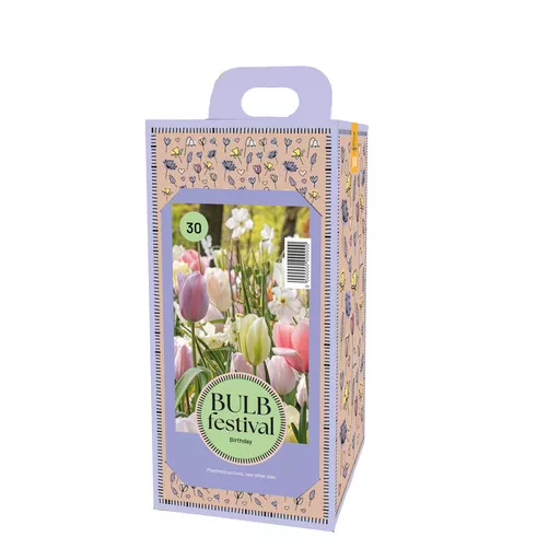 Karakteristike proizvoda: Opis: Svečana mješavina od 30 lukovica cvijeća koje se mogu saditi zajedno. Pogodne su kao rubne biljke, ali se mogu saditi i u balkonske posude. Visina: 35–60 cm. Veličina lukovice: I. razred. Vrijeme cvatnje: travanj–svibanj. Vrijeme sadnje: Sz...