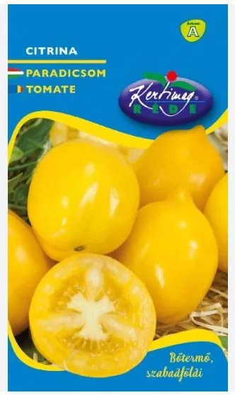 Ima žute plodove u obliku limuna. Citrina daje ovalne, limunolike, srednje velike rajčice, svaka oko 80 grama. Prekrasni sjajnožuti plodovi s šiljastim vrhom. Tankoškoljke, sočni plodovi koji se dobro čuvaju nakon berbe. Raste do oko 200 cm visine.