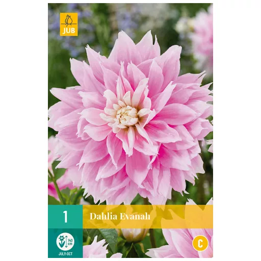 Velikocvjetna, dekorativna dalija Evanah zahvalan je ljetni cvijet koji veseljem služi mjesecima. Dalija Evanah cvate cijelo ljeto od srpnja do prvih noćnih mrazeva. Dalija Evanah naraste oko 80 cm. Ponekad je potrebno poduprijeti stabljike cvjetova.
