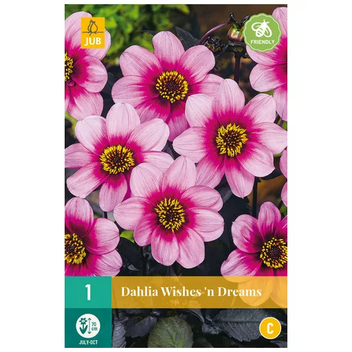 Jednostruki cvjetni dalija Wishes n Dreams povoljan je ljetni cvijet koji pruža radost mjesecima. Dahlia Wishes n Dreams cvjeta cijelo ljeto od srpnja do prvih mrazeva. Dahlia Wishes n Dreams raste približno 70 cm visine. Zbog toga je ova dalija izvrsna i za sadnju u teglama na terasi ili balkonu.