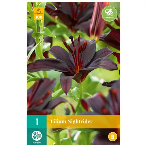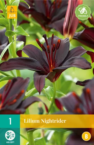 Crni cvjetni Nightrider prekrasan je vrtni i rezani cvijet. Visok je 120 cm. Nakon cvatnje mogu ostati u tlu i svake godine ponovno procvjetati. Ljiljani su također izvrsni za sadnju u cvjetnim posudama ili koritima.