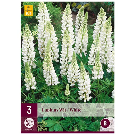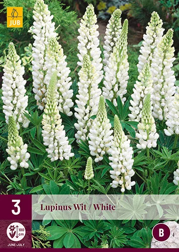 Lupinus u bijeloj boji dobro raste na otvorenom. Svježe zelene listove dlanasto su složeni i ostaju ispod cvjetova. Cvjetovi su raspoređeni oko stabljike u dugim grozdovima. Visina 90-100 cm. Iskopajte prostranu sadnu rupu i dobro rastresite tlo. Poboljšajte vrtno tlo miješanjem malo treseta. Postavite korijenje lupinusa na odgovarajuću dubinu u sadnu rupu. Vrh grudice korijenja trebao bi biti neposredno ispod razine tla. Napunite sadnu rupu zemljom i čvrsto utisnite. Odmah zalijte nakon sadnje. Lupinus dobro uspijeva na punom suncu ili polusjeni. Osigurajte dobro drenirano, pjeskovito tlo.