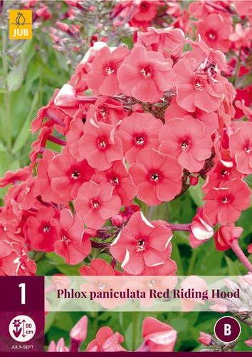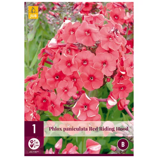 Phlox paniculata Red Riding Hood prekrasna je sorta za zeleno-bijeli cvjetni vrt. Cvjetovi se u pupu uvijaju, razvijaju u pet latica s udubinom u sredini. Cvjetovi šire profinan miris i privlačni su leptirima. Phlox paniculata Red Riding Hood je trajnica koja najbolje raste na otvorenom.