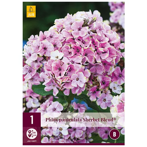 Phlox paniculata Sherbet Blend lijepa je selekcija za vrt, s ružičastim i zelenim cvjetovima. Cvjetovi se u pupu uvijaju, podijeljeni na pet latica s otvorom u sredini. Cvjetovi šire blag miris i privlače leptire. Mađarski naziv phloxa je lángvirág.