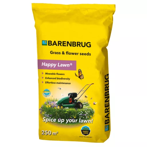 Zahvaljujući Happy Lawn® tehnologiji, možete pozitivno utjecati na svoju neposrednu okolinu. Riječ je o rješenju koje kombinira otpornu travu i cvijeće koje se kosi. To su biljke koje se mogu kositi iznova zajedno s travom, ali nakon svake košnje ponovno se obnavljaju i rastu, čineći vaš travnjak lako održivim, bujnim i šarenim.