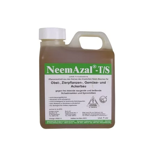 Neem Azal® T/S je biološki insekticid sa složenim mehanizmom djelovanja, pogodan protiv sisajućih, grizućih i listoukladača štetnika. Ulazi u organizam štetnika putem hranjenja (grizenjem ili sisanjem), gdje potom djeluje blokadom hranjenja, inhibicijom sinteze hitina i suzbijanjem razmnožavanja. Zbog svog složenog mehanizma djelovanja i drugačijeg načina djelovanja u odnosu na konvencionalne insekticide ima izvrsna svojstva za kontrolu rezistencije, pa se lako može uklopiti u konvencionalne programe zaštite. Proizvod ima dubinsko djelovanje, upija se u list i može djelovati protiv skrivenih i teško kontrolirajućih štetnika, poput listoukladača. Populacije grizonožaca koje sisaju sa donje strane lista i koje su odgovorne za širenje brojnih virusnih bolesti također se uspješno kontroliraju ovim pripravkom. Ima nisku ekološku perzistenciju.
