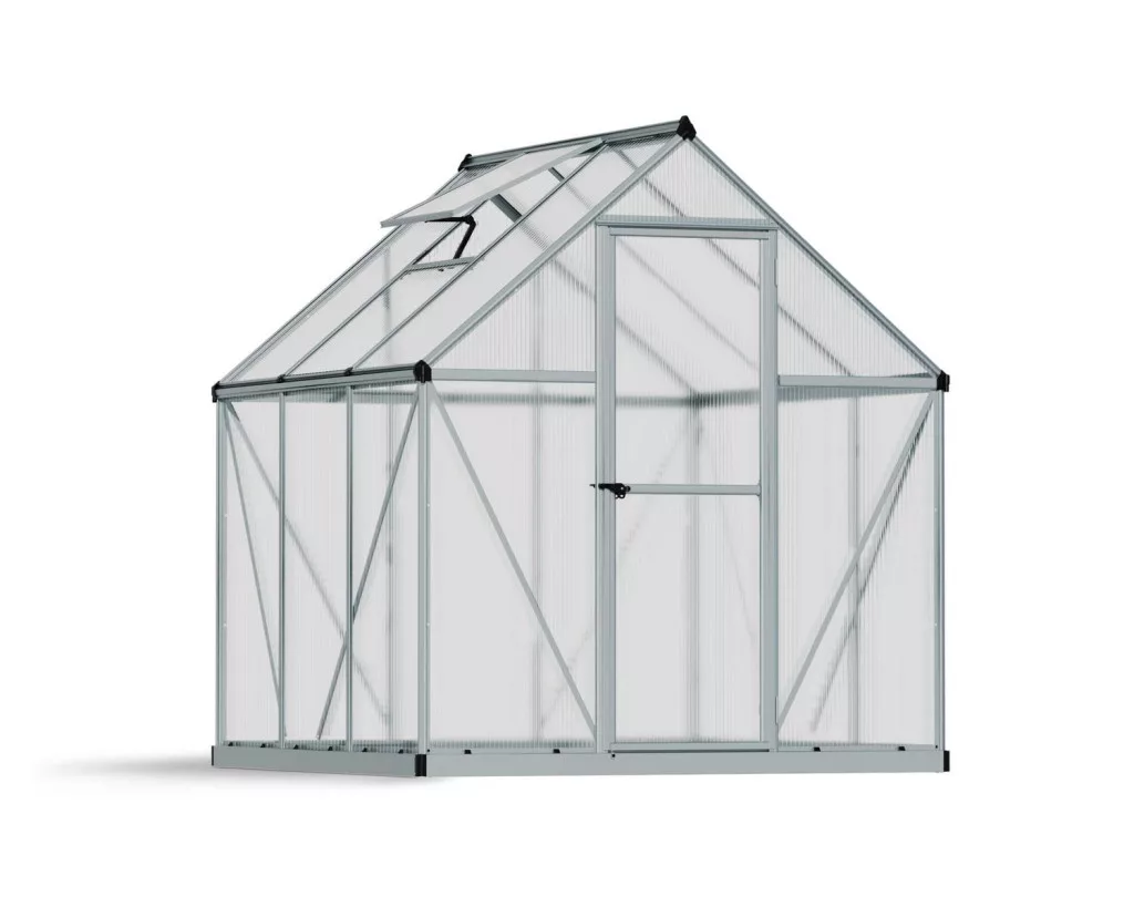 Polikarbonatni staklenik Palram-Canopia MYTHOS u srebrnoj boji, dimenzija 1,83 x 1,83 m, predstavlja praktično i promišljeno rješenje za sve koji žele pouzdan, zaštićen prostor za uzgoj biljaka u svom vrtu.