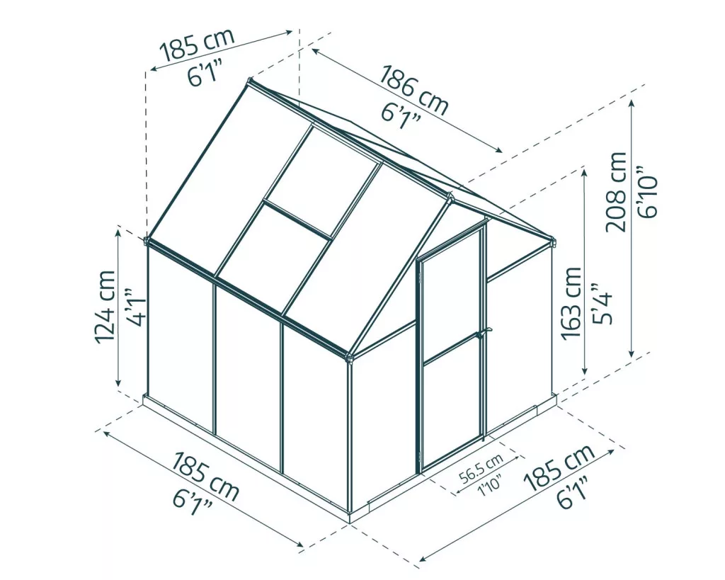 Dimenzije 1,83 x 1,83 m pogodne su za manje vrtove, dvorišta i prostore gdje je važno optimalno iskoristiti svaki kvadratni metar. Zbog kompaktnog oblika lako ga je smjestiti na osunčani dio vrta i kombinirati s gredicama, uzgojnim sanducima ili većim posudama.
