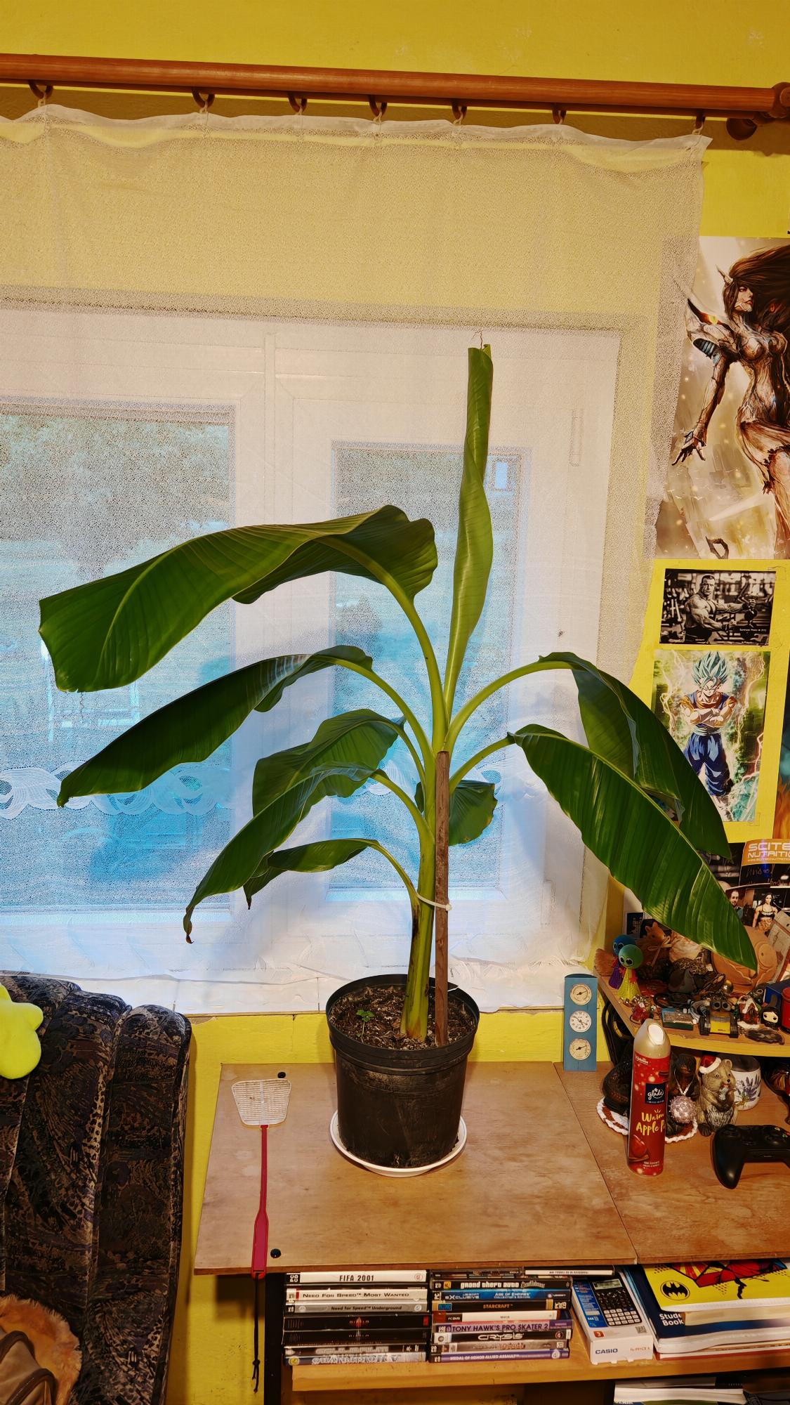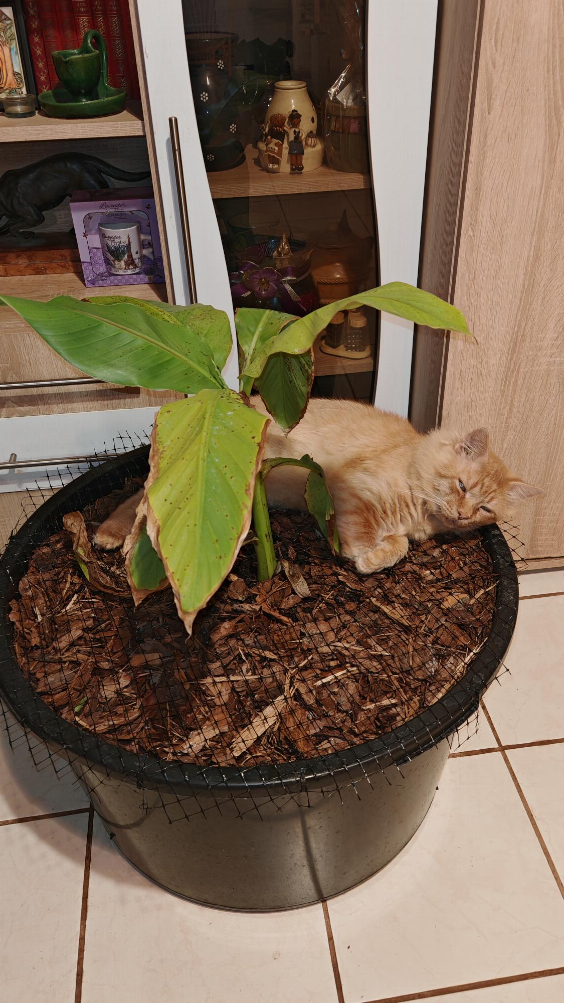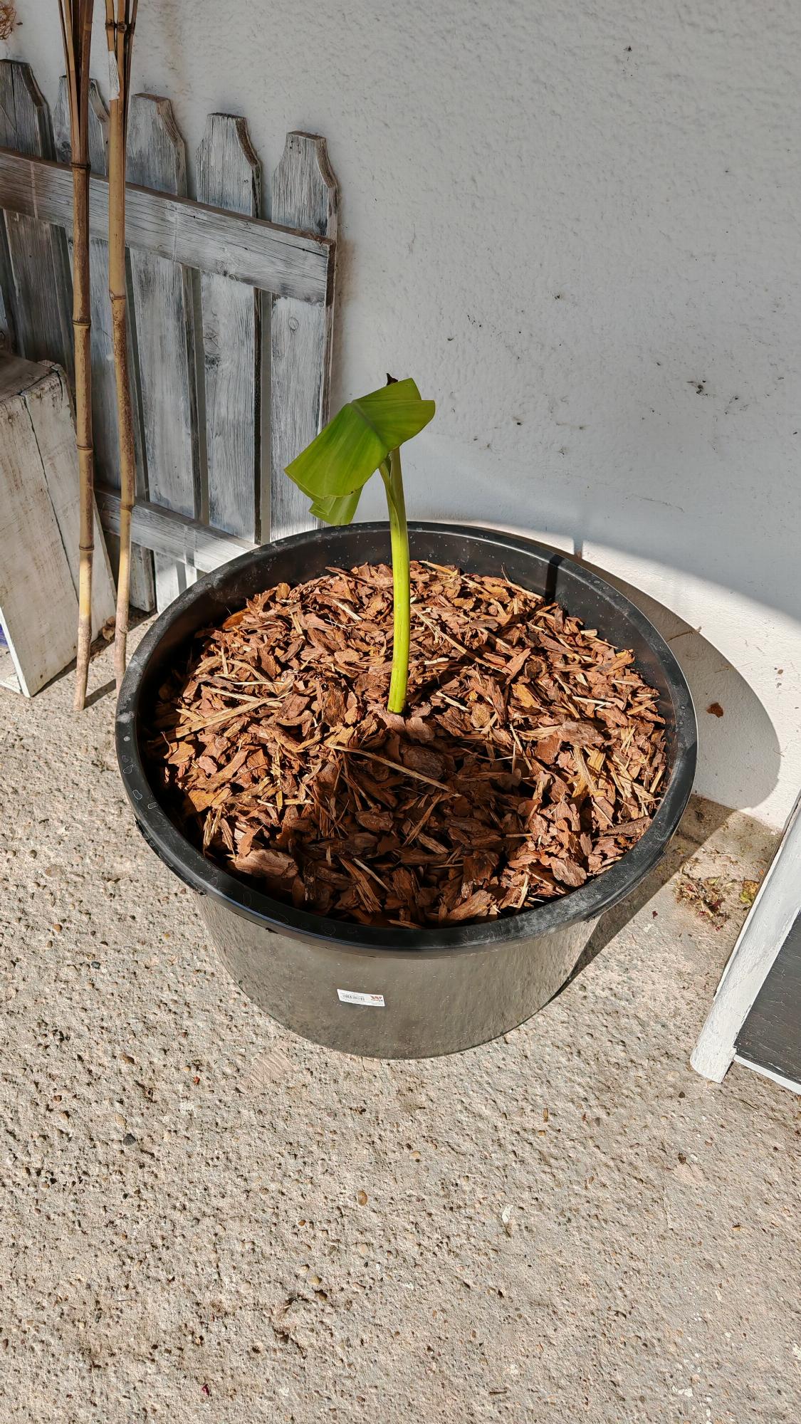 Januárban vásárolt Musa daijo ,bent 3. Kép meg teljesen szép volt . Májusba került kiültetésre de az összes levelet eldobta hozott újat de azok betegek voltak fekete pöttyös itteni tanácsra réz szulfát permetezést kapott egy ideig jól volt de utána megint betegnek látszott 2 hete áttettem egy 80l ládába inkább akkor legyen ebben majd télen bent ,jelenleg most kint van félárnyekos helyen de nem igazán változott az állapota , menthető még? Látszik hogy hozna új levelet de napok oda mm sem jőtt . Másik két banán fám szélén növöget. Ez az egy ami nem akar .