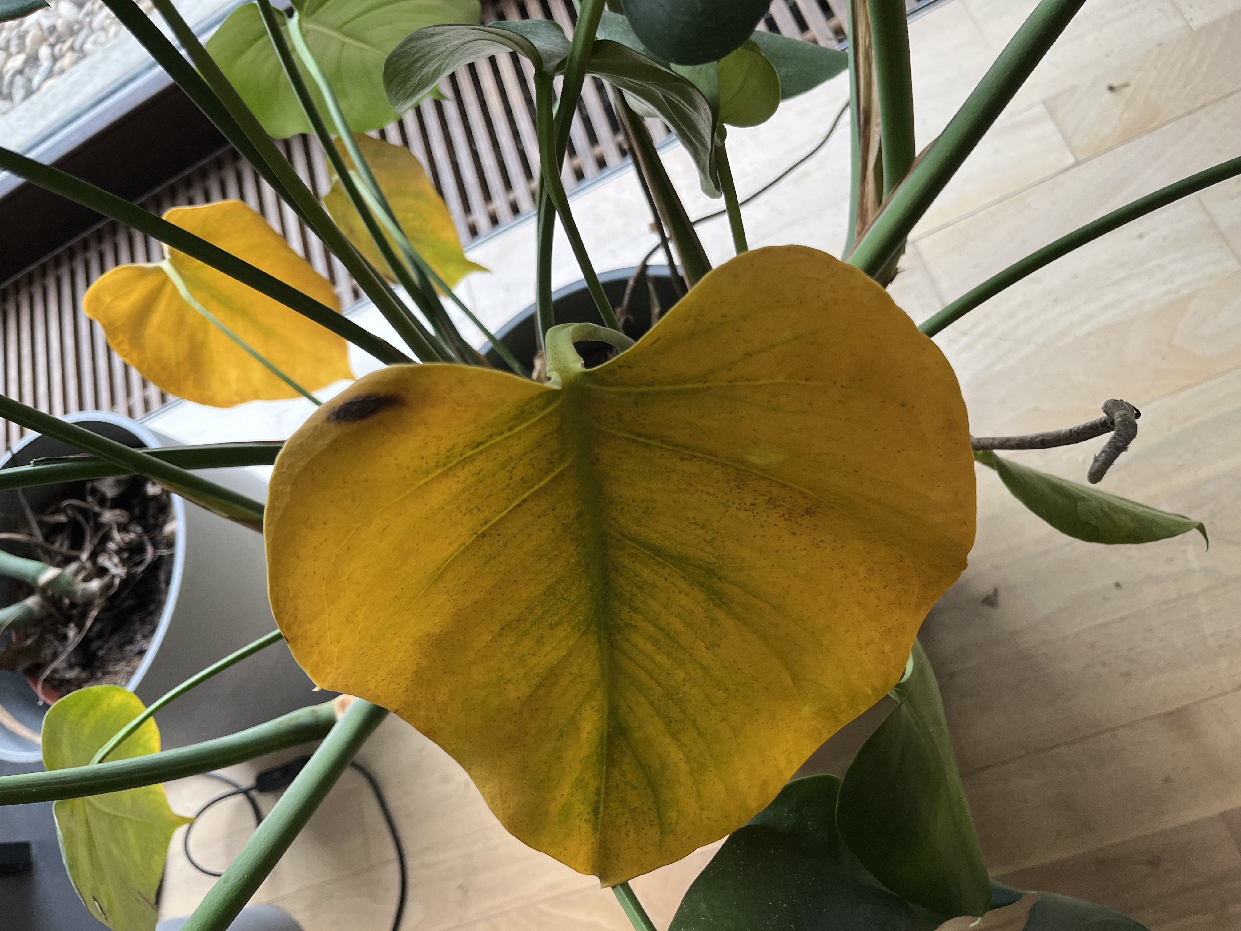 A gond összetett lehet. Tápanyaghiány, elsősorban nitrogén a probléma, de a levélszélszáradás utalhat kálium hiányára is. Ez adódhat túlöntözésből, vagy tényleges hiányból, esetleg kinőtt, túl szűk cserép is lehet a gond. A másik ok lehet a téli fényhiány, ami miatt sárgulhatnak a levelek. Emellé társulhat az alacsony páratartalom a fűtött helyiségben. Minél kevesebb a fény, annál hűvösebb helyiségben kell tartani a növényt. Bár a trópusi növényeknek nincs pihenőidejük, nagyobb a túlélés esélye, ha télen próbéljuk visszfogni a fejlődését. Javasolt cikk: https://www.gazdabolt.hu/cikkek-hirek/cikk/miert-barnul-a-szobanovenyek-levele-5-1-megfejtes
