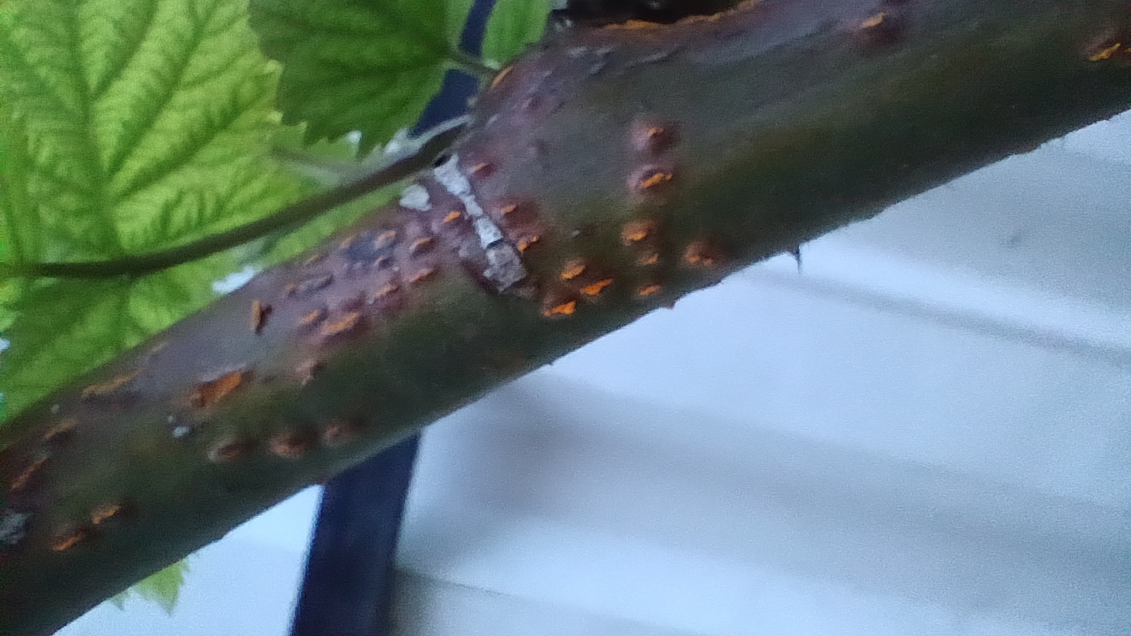 Szederrozsda támadta meg a növényt. Sűrű állományban, párás körülmények között támad. A károsodott vesszőket távolítsa el, permetezzen Amistar, Switch, Chorus, Signum stb készítmények valamelyikével, vagy virágzásig bármilyen réztartalmú szerrel (Nordox).