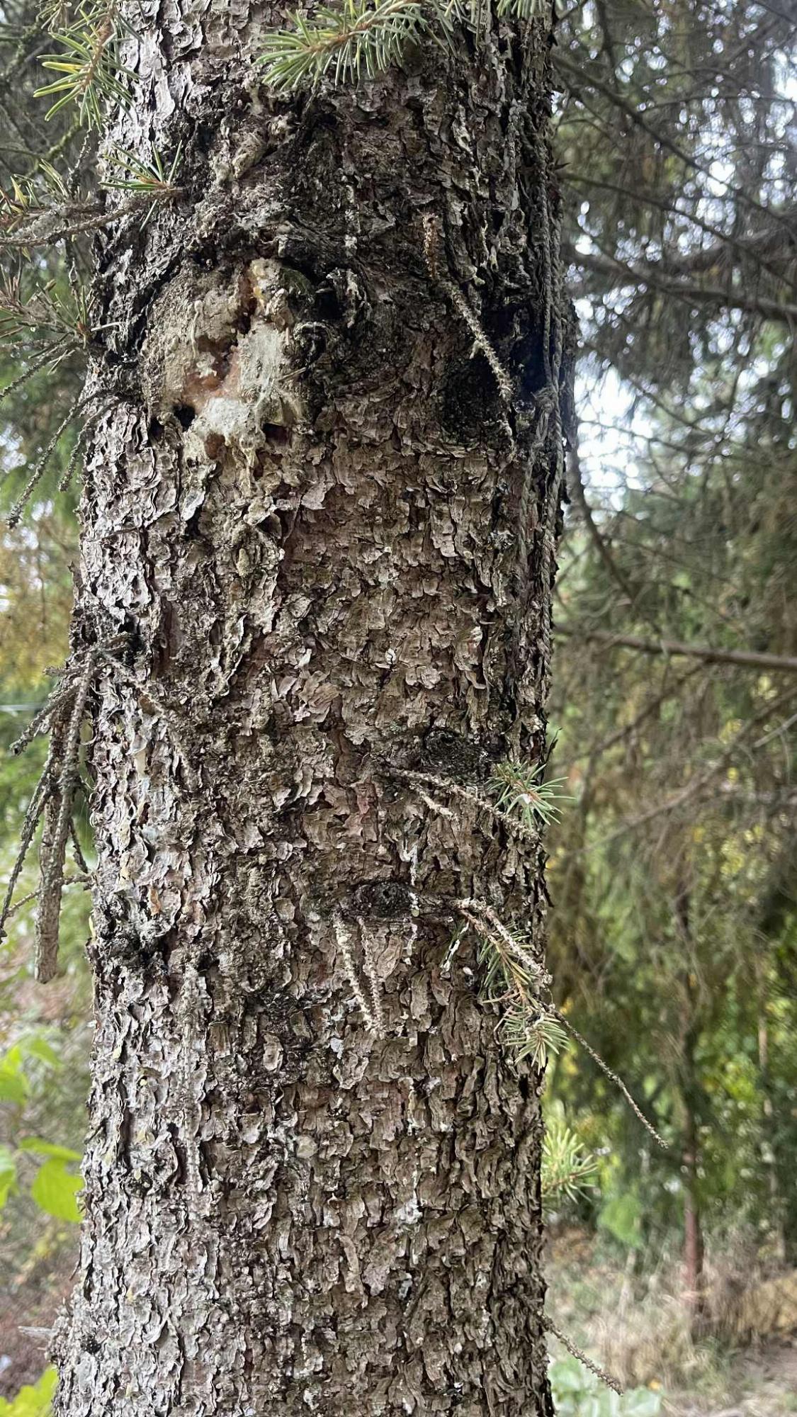 Ezeknek a fáknak mélyen, és a lombcsurgó alatt vannak a gyökerei. Vízhiány és tápanyag hiány. A szú próbálkozik, de úgy néz ki még a gyanta védi a fát. Ha nincs elég víz, táp, akkor a régi tűket eldobja a növény.