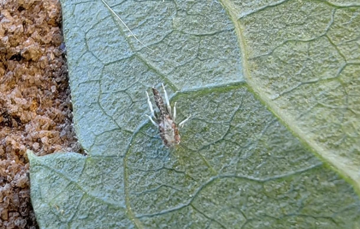 Üdvözletem. Jó pár levélen jelentkezett ez a pettyezettség. A levél fonákán nem nagyon látszik, csak a színén. Viszont találtam egy egy rovart a levél visszáján. Lehet, a pettyekhez nincs köze, de azért lefotóztam. Kb2-3 mm ,fehér lábai vannak, a potrohrésze, csíkos. Nem sűrűn van jelen , egy egy pettyes levélen 1,esetleg 2.A levél színén,- ha erős nagyítóval nézem, találni apró gömböket elszórtan, némely fekete, mintha belőle kikelt volna valami,de igen apró nem nagyon látni. Mi lehet a baj? Mi okozhatja? A vadszőlő ládában él,délkeleti fekvés, árnyékolással-tűző naptól mentesen.A gondozásához