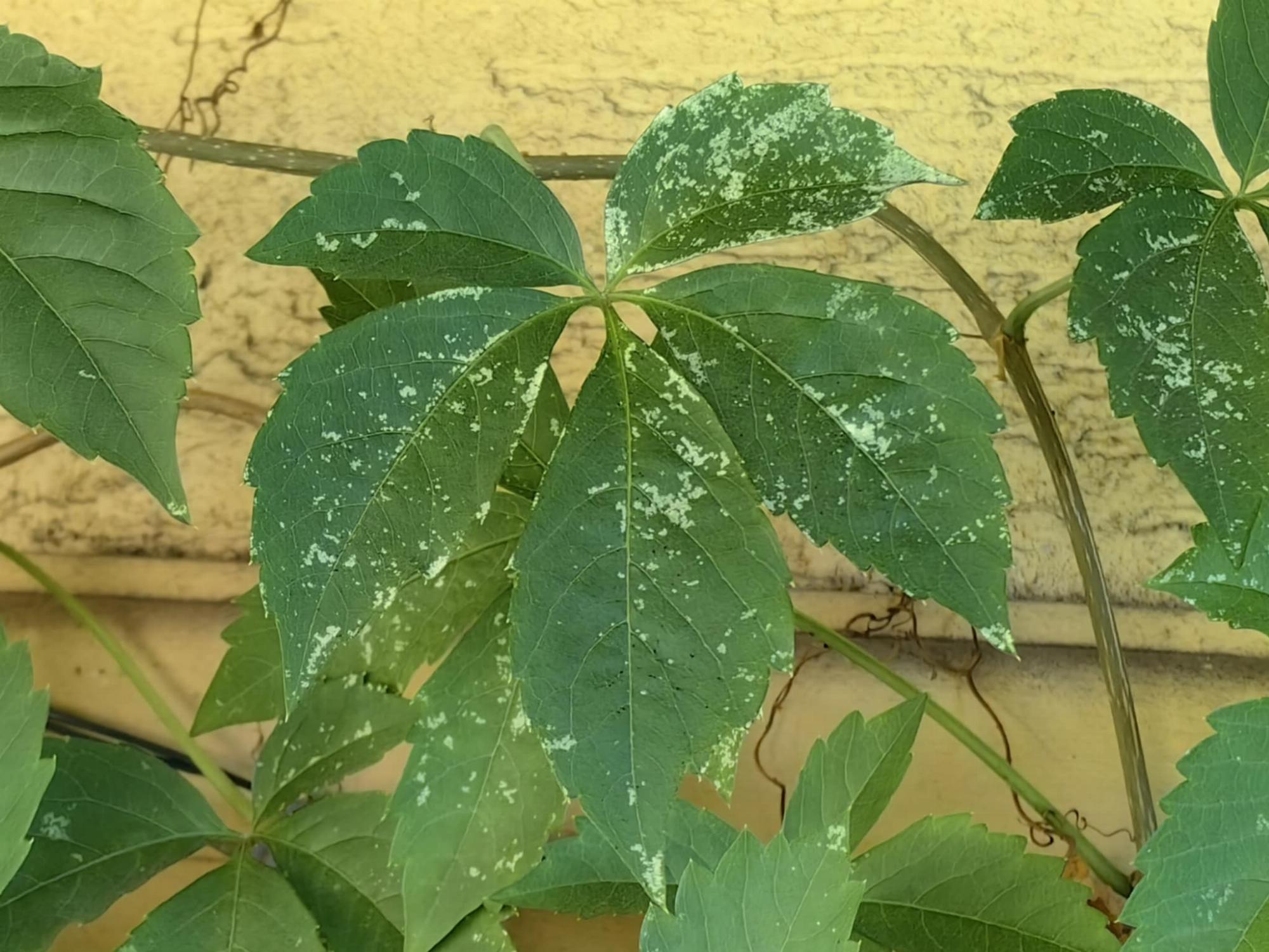Vadszőlő levelén, fehéres ezüst pettyek.