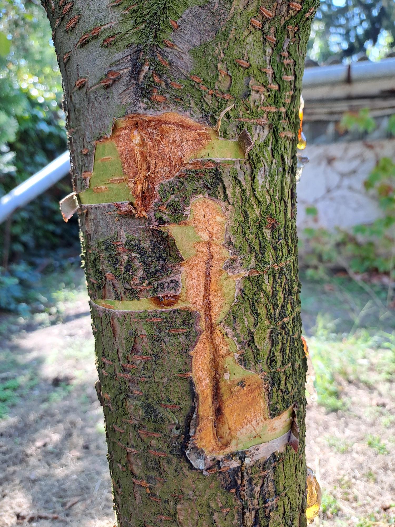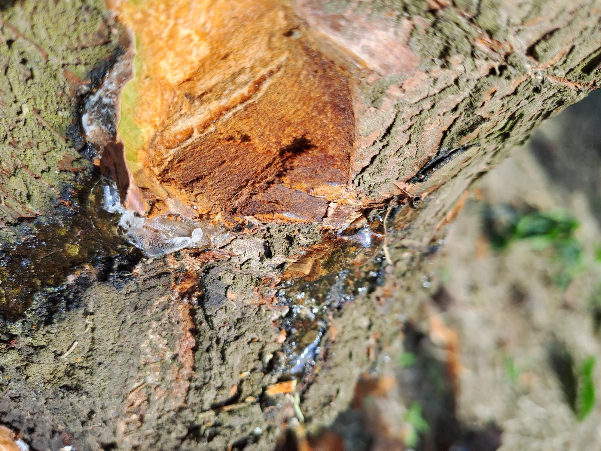 Levágtam a mézgás részeket és kezeltem, ahogy tanácsolta. Viszont szinte mindegyik mézgásodás alatti rész alatt egy sötét csík volt, ahog a mellékelt fotón is látszik. Azokat a részeket is kivágtam, amennyire tudtam. Mi lehet az oka, hogy így nézett ki?