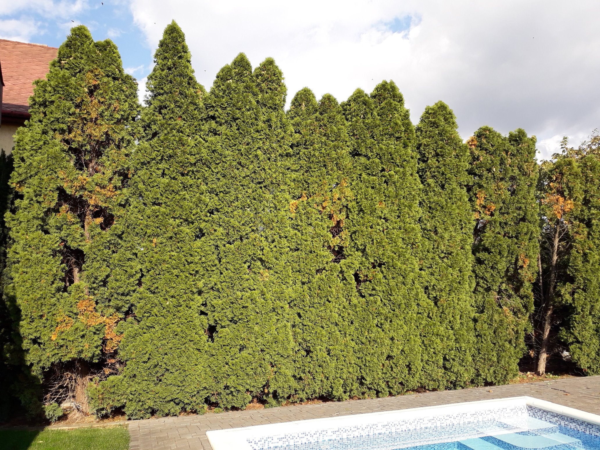 A tuja a klímaváltozás vesztese: szenved a szárazságtól, a hőségtől és számos kártevője is akad mostanság (tujafúró aranymoly, tujaszú, boróka tarka-díszbogár). Valóban megfelelő öntözéssel (reggeli órákban párásító öntözés), valamit tápanyag-utánpótlással lehet jó karban tartani a tujasövényt. Alaptrágyaként javaslok örökzöldek számára ajánlott valamilyen tartós műtrágyát. Lombtrágyázni célszerű a nyár folyamán (rovarölő szeres permettel egy menetben) maga magnézium- vas- és káliumtartamú készítménnyel. Az elhalt részeket tőből ki kell vágni a sövényből és elégetni.