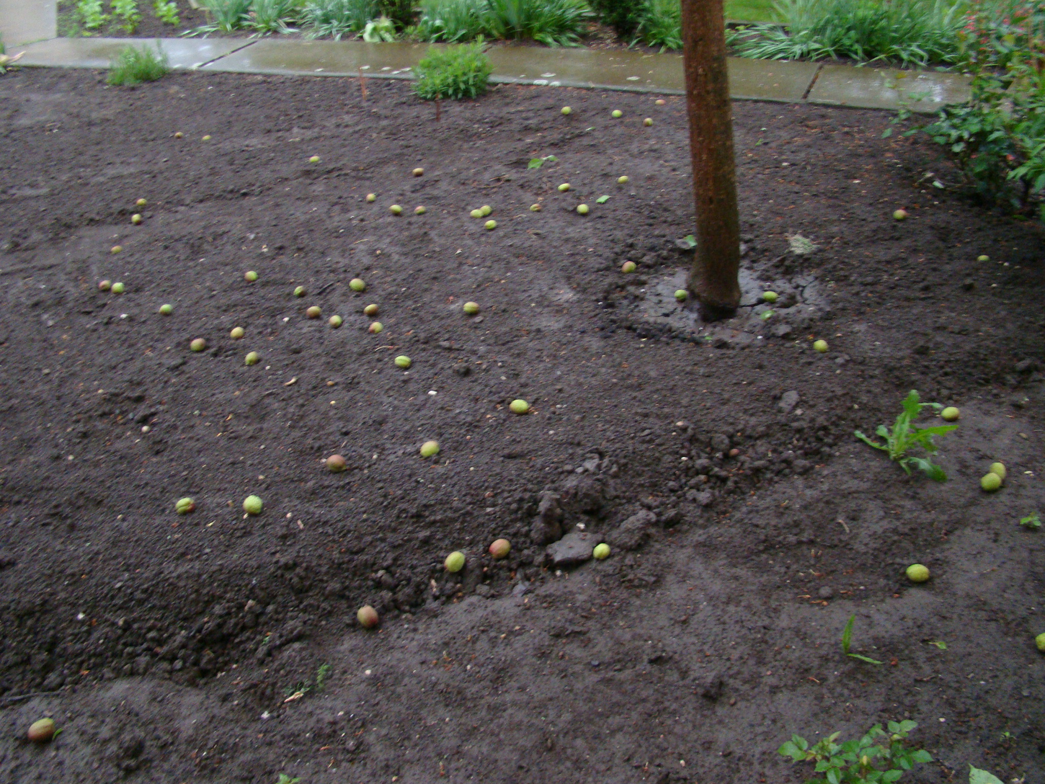 Ez évben ismét rengeteg virág volt rajta, mind megkötött, 90%-át le kellett szedni, olyan mogyoró nagyságú állapotában, 60-80 szemet hagytam rajta. Most szép nagy -diónyi- nagyságúak, de tegnap reggelre a fa alja terítve volt a lehullott barackokkal, ma megint. 20-25 szem maradt még rajta. Monília ellen az előírás szerint 3x permeteztem, azt nem gondolom hogy közrejátszana.