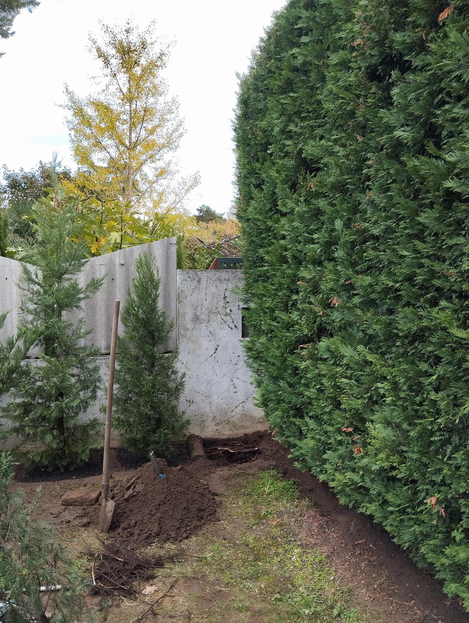 A teraszom mellé egy leylandi ciprust ületettem 2021. novemberében. Gyors növekedés, a szomszéd takarasa volt a cél.